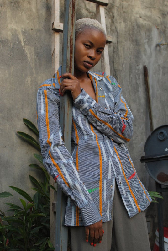 Dur dur la culture! Oh yes, that's tough! How do we represent culture in this first collection? How do we remain respectful, fair, and unassuming ahead of this very HARD and BOLD task? Some pieces shown in this collection have sources and origins deep within the fabric culture of our local regions, especially that of the Baoulé and Mannois people. The pieces remain at the crossroads, between traditionally handmade fabrics and modern designs. It's a translation of our heritage into modernity.